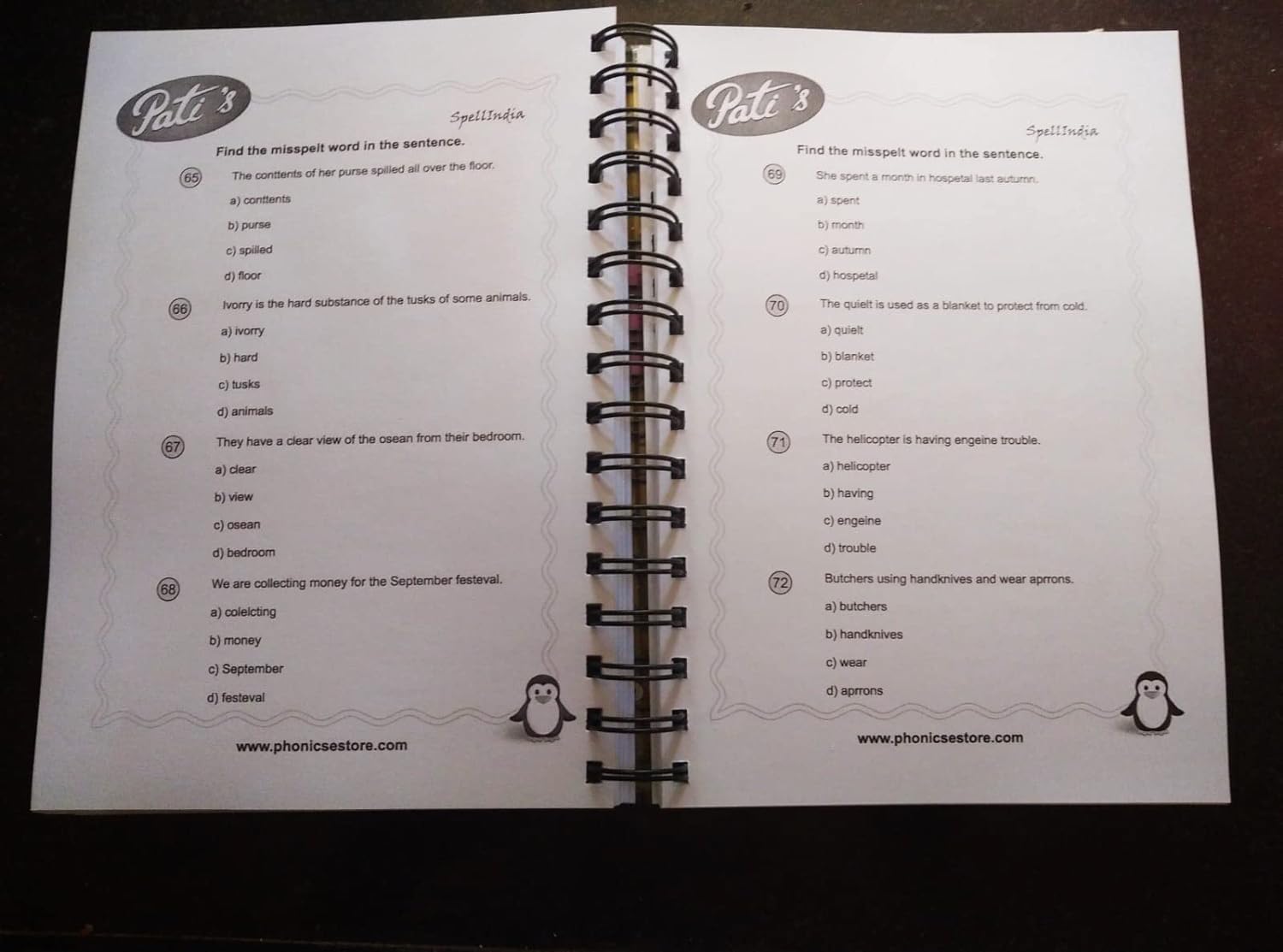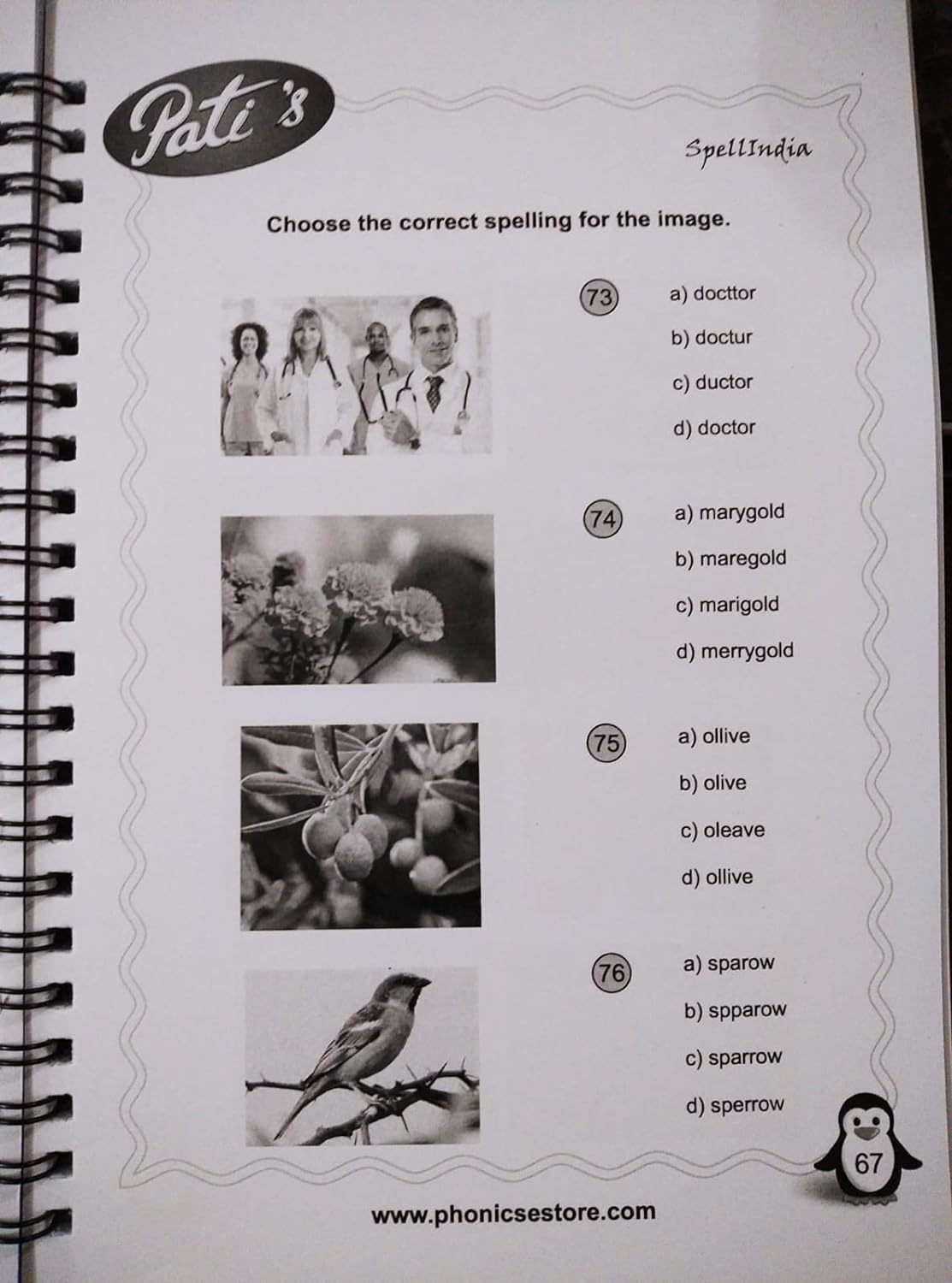 This workbook helps prepare for "Identify the correct Spelling" topic. The following are available at amazon on this topic : # series of 3 workbooks # series of 2 word list books – helps learn spelling first # 1 book. These will help prepare for MaRRS Spelling bee championship exams in Category 1 & Category 2 across levels from school level till international level. . . . You may buy individual books as well as STUDY SETS at amazon. Study Sets are available category wise and round wise. . Before buying an individual book do check the study set. It is a cost friendly option and provides completeness to your preparation. These were started in May 2017 and in its first year it has been part of the study material of many including the most successful participating child in the year. The COVER IMAGE of each Study Set states the topics / books included. The study sets available are listed here. For each the code to be used to search at amazon is also provided for your convenience. . CATEGORY 1 ROUND 1 : B076C65TZ4 . CATEGORY 1 ROUND 2 : B071JN6PF4 . CATEGORY 1 ROUND 3 : B07211DWV2 . CATEGORY 1 ROUND 4 : B071G2BBPC . CATEGORY 1 ROUND 5 : B072WNXX7Q . CATEGORY 2 ROUND 1 : B072WLS26T . CATEGORY 2 ROUND 2 : B071G2BGCK . CATEGORY 2 ROUND 3 : B071WLCYX7 . CATEGORY 2 ROUND 4 : B071G2BBPC . CATEGORY 2 ROUND 5 : B072WNXX7Q . . For pre purchase queries whatsapp +91 9820354672. If you are from UAE we will make arrangements to reach you. Do connect with us. . These study material are made available as part of "Spell India" initiative. . We strive to make winners out of participants. . We are just a whatsapp away +91 9820354672