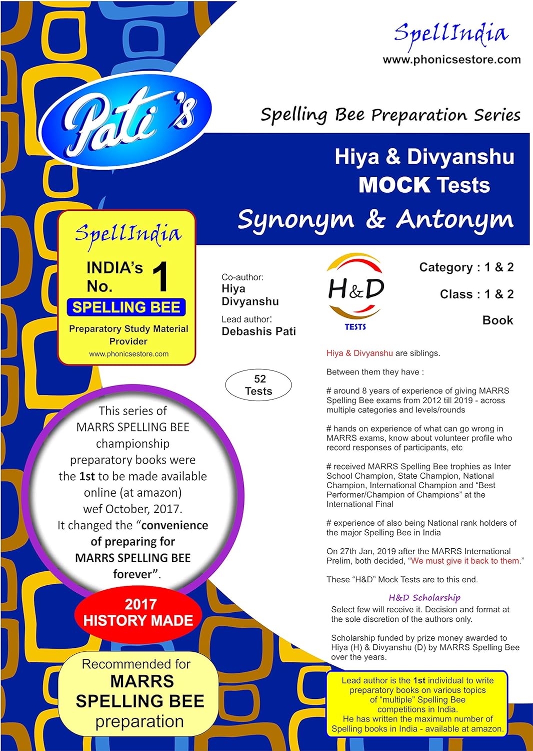 H & D MOCK TESTS - Synonym & Antonym - Category 1/2 - Class 1/2 .... prepare for MaRRS Spelling Bee exams ... 52 H&D Tests from Spell India ... for pre purchase queries whatsapp +91 9820354672 Paperback – 1 January 2016