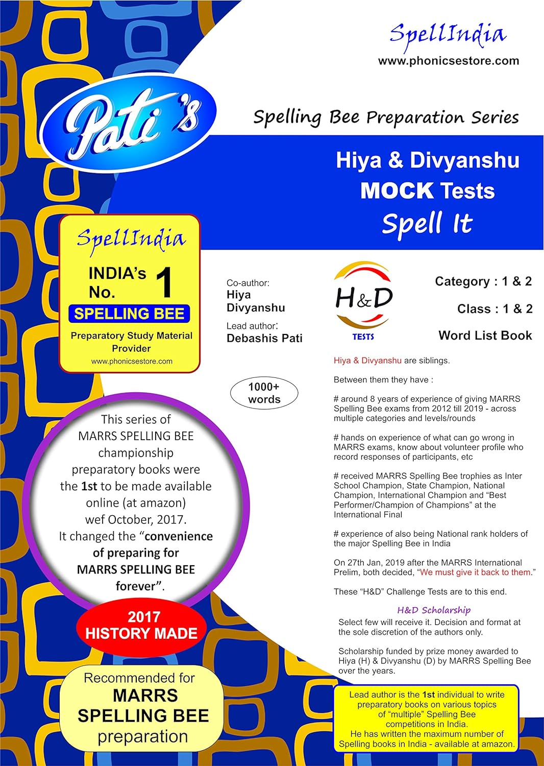 H & D MOCK TESTS - Spell It Word List Book - Category 1/2 - Class 1/2 .... prepare for MaRRS Spelling Bee exams ... Word List of 1000+ words to test your child from Spell India Flexibound – 1 January 2017