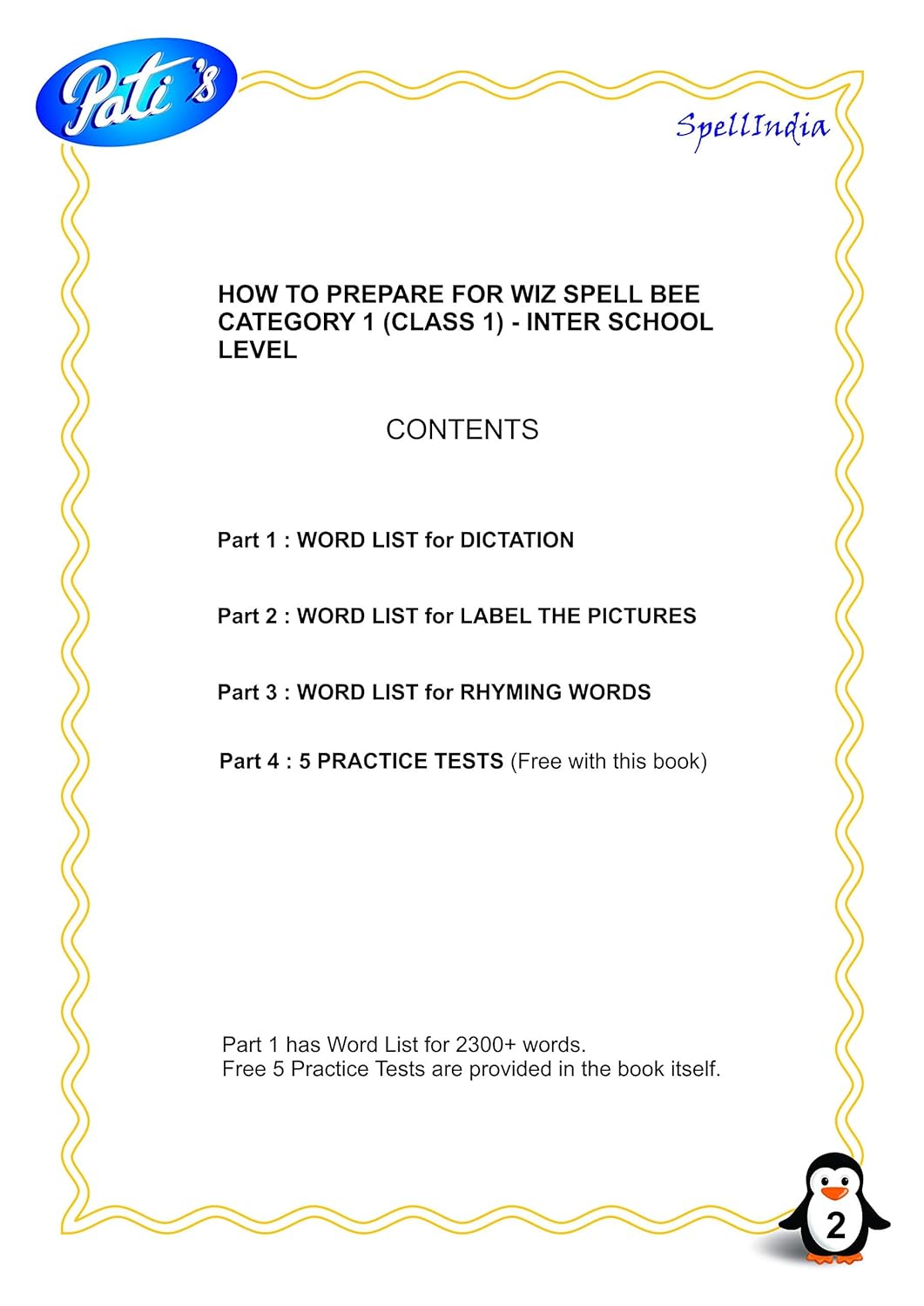 How to Prepare for WIZ Spell Bee - Category 1 (Class 1) : Practice Test Papers ... SCHOOL LEVEL. There are 12 practice Test Papers. Topics are as mentioned on the cover page image. .... for pre purchase queries whatsapp 9820354672