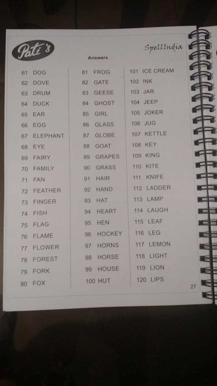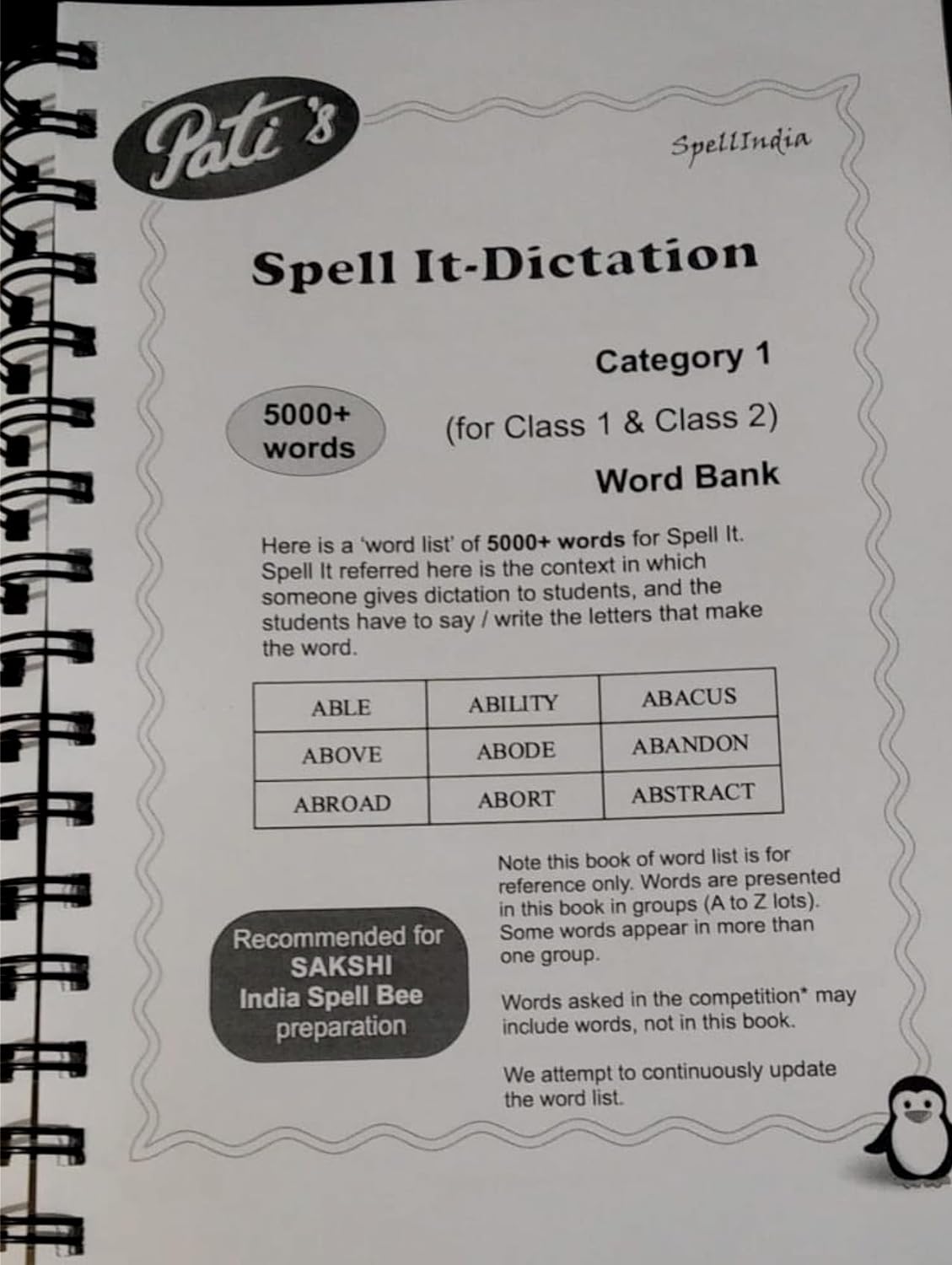 Word List Book to prepare for Sakshi India Spell Bee exam - Category 1 - Classes 1/2 .... from Spell India ....... has 1000+ "WORD LIST" only ..... children friendly "EASY-2-TURN" & "VERY STRONG" WIRO BINDING .......... PRICE INCLUDES shipping fee Paperback – 1 January 2017