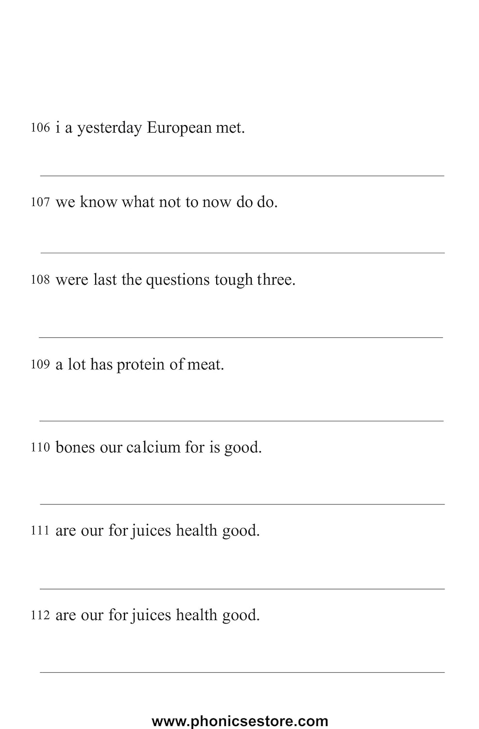 1 out of 100+ Pati's work books for children at amazon in English - it has 500+ sentence questions for JUMBLED WORDS & SENTENCES. Do check question pattern on cover image. For pre purchase queries whatsapp 9820354672