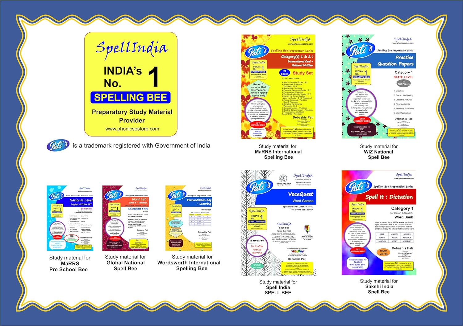 How to Prepare for India Spell Bee exam - Class 1. 25 Practice Test Papers. 1500+ words' lists. Also an ALL FREE Spell Bee Exam. These are independent initiatives of SPELL BEE ACADEMY. Flexibound – 14 August 2023