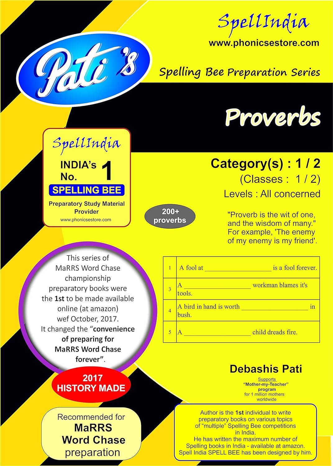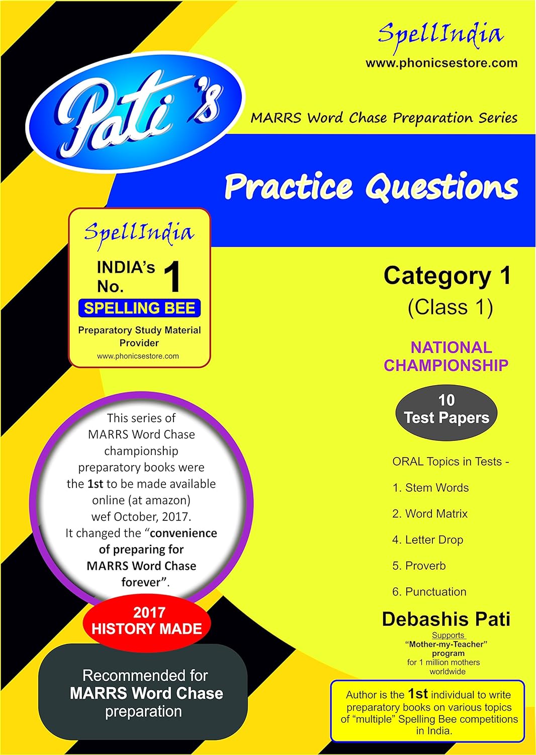 This workbook will help child prepare for Suprasegmentals - Marrs Spelling Bee championship exams for Category(s) 1 & 2 - Classes 1 & 2 ... You may buy individual books as well as STUDY SETS at amazon. Study Sets are available category wise and round wise. . Before buying an individual book do check the study set. It is a cost friendly option and provides completeness to your preparation. These were started in May 2017 and in its first year it has been part of the study material of many including the most successful participating child in the year. The COVER IMAGE of each Study Set states the topics / books included. The study sets available are listed here. For each the code to be used to search at amazon is also provided for your convenience. . CATEGORY 1 ROUND 1 : B076C65TZ4 . CATEGORY 1 ROUND 2 : B071JN6PF4 . CATEGORY 1 ROUND 3 : B07211DWV2 . CATEGORY 1 ROUND 4 : B071G2BBPC . CATEGORY 1 ROUND 5 : B072WNXX7Q . CATEGORY 2 ROUND 1 : B072WLS26T . CATEGORY 2 ROUND 2 : B071G2BGCK . CATEGORY 2 ROUND 3 : B071WLCYX7 . CATEGORY 2 ROUND 4 : B071G2BBPC . CATEGORY 2 ROUND 5 : B072WNXX7Q . If you are from UAE we will make arrangements to reach you. Do connect with us. . These study material are made available as part of "Spell India" initiative. . We strive to make winners out of participants.