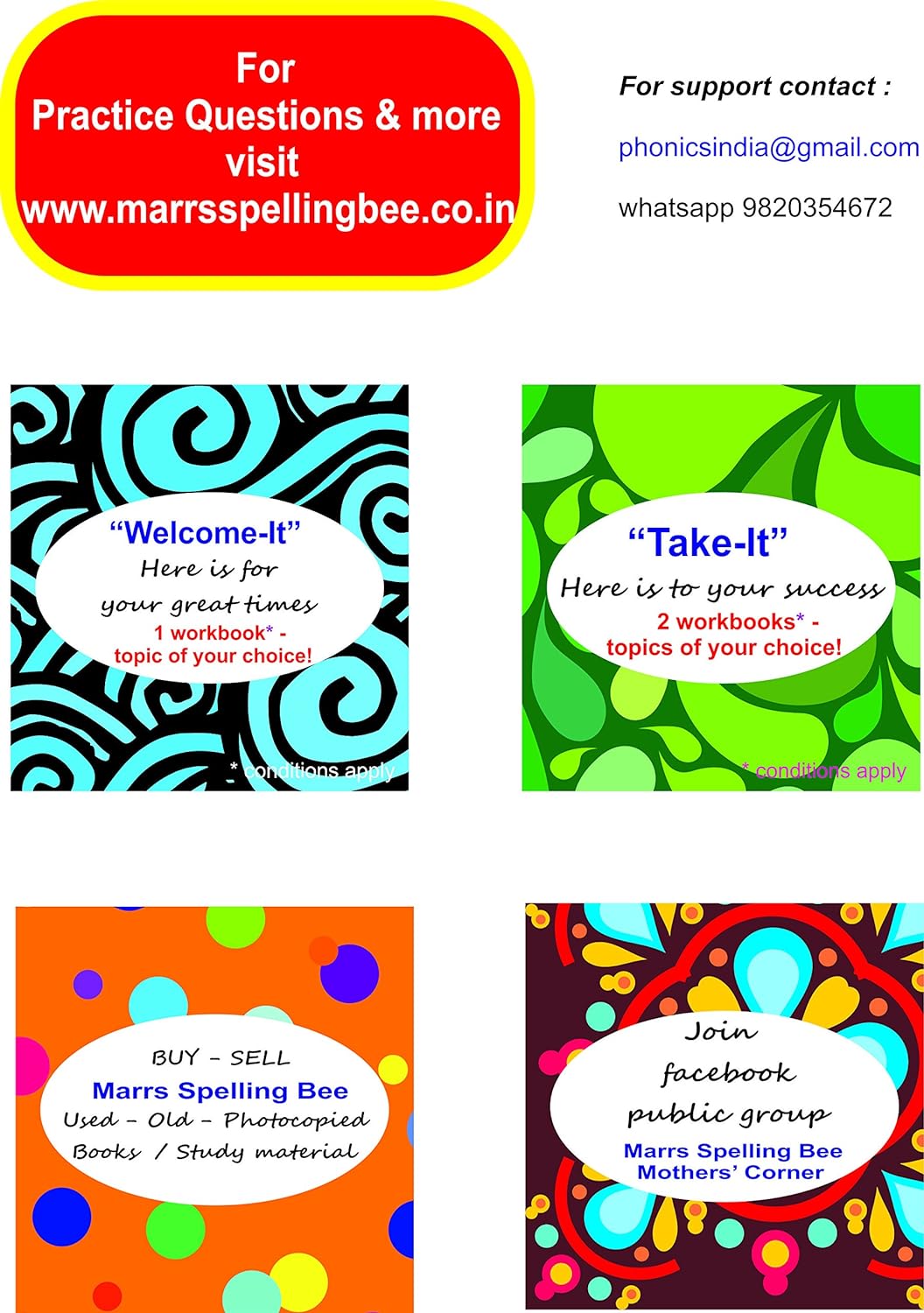 MARRS SPELLING BEE : Prepare for Spell Bee Exam - School Level - Class 1 - for pre purchase queries whatsapp us ... SPELL BEE ACADEMY, Four topics covered - as mentioned on cover image. ALL FREE Online Spell Be Certificate exam details provided in this book.