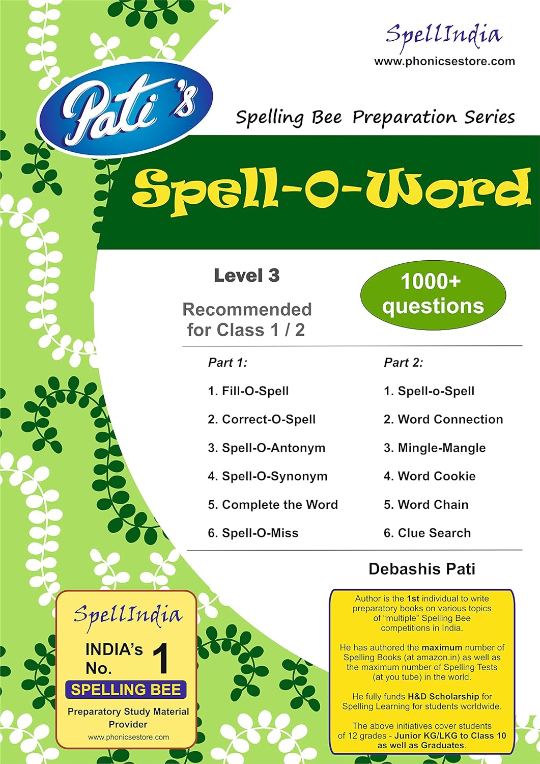 # This book has SPELLING QUESTIONS suitable for Class 1 / Class 2 students. # Parents may use to help their child learn spelling. And also use it to prepare for Spell Bee exams. # Schools can use as part of their curriculum or conduct SPELL BEE competitions at their school. # The price of the book INCLUDES shipping fee. So, no additional shipping fee is charged. # ALL FREE* Online SPELL BEE CERTIFICATE EXAM : * Contents not part of this book in any manner. NO FEE. Eligible on purchase of this book. Details to register provided in this book. # This is a SPELL INDIA initiative for spelling learning. # SPELL INDIA is India's No 1 preparatory study material provider for multiple spelling bee exams. # Author is the 1st individual to write preparatory books on various topics of “multiple” Spelling Bee competitions in India. He has written the Maximum Number of Spelling Books as well as Tests in the world. He is a Spelling Habit Creator among students across continents.