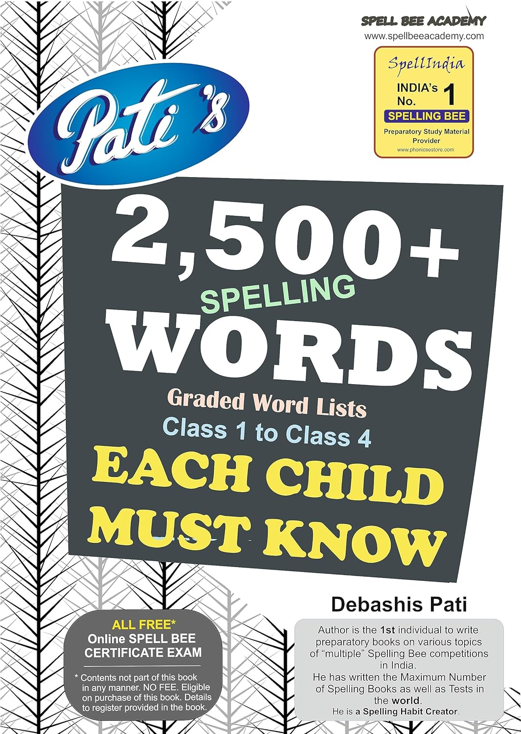 # This book has SPELLING WORD LISTS. There are 2500+ Words which every child must know. The word lists have been graded and are provided in four groups for Class 1 to Class 4 students. It is recommended that these 2500+ words must be learnt befpore a child reaches Class 5. # Schools can use as part of their curriculum or conduct SPELL BEE competitions at their school. # The price of the book INCLUDES shipping fee. So, no additional shipping fee is charged. # ALL FREE* Online SPELL BEE CERTIFICATE EXAM : * Contents not part of this book in any manner. NO FEE. Eligible on purchase of this book. Details to register provided in this book. # This is a SPELL INDIA initiative for spelling learning. # SPELL INDIA is India's No 1 preparatory study material provider for multiple spelling bee exams. # Author is the 1st individual to write preparatory books on various topics of “multiple” Spelling Bee competitions in India. He has written the Maximum Number of Spelling Books as well as Tests in the world. He is a Spelling Habit Creator among students across continents.