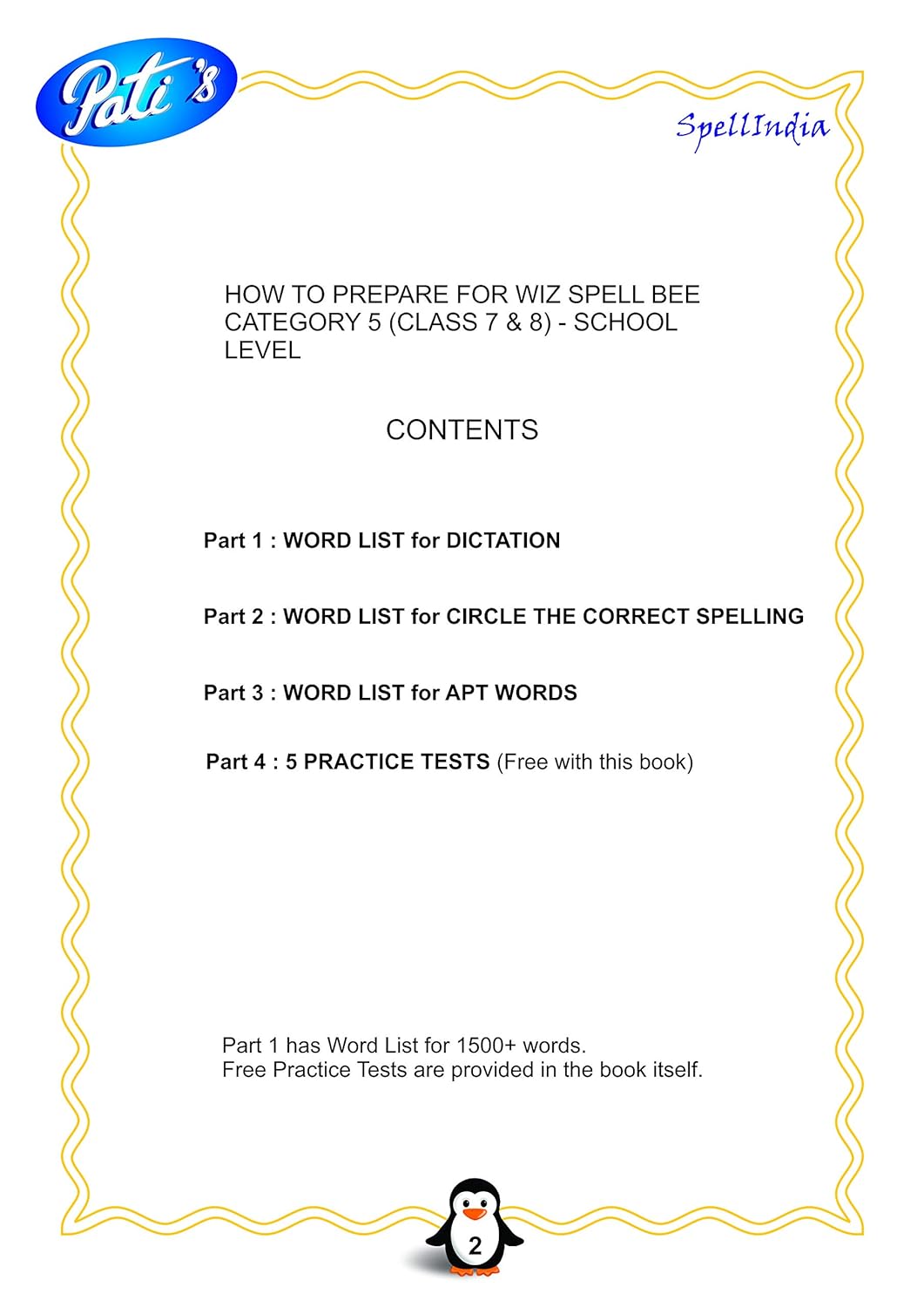 How to Prepare for WIZ Spell Bee - Category 5 (Class 7 / Class 8) : Practice Test Papers ... SCHOOL LEVEL. There are 5 practice Test Papers. Topics are as mentioned on the cover page image. .... for pre purchase queries whatsapp 9820354672