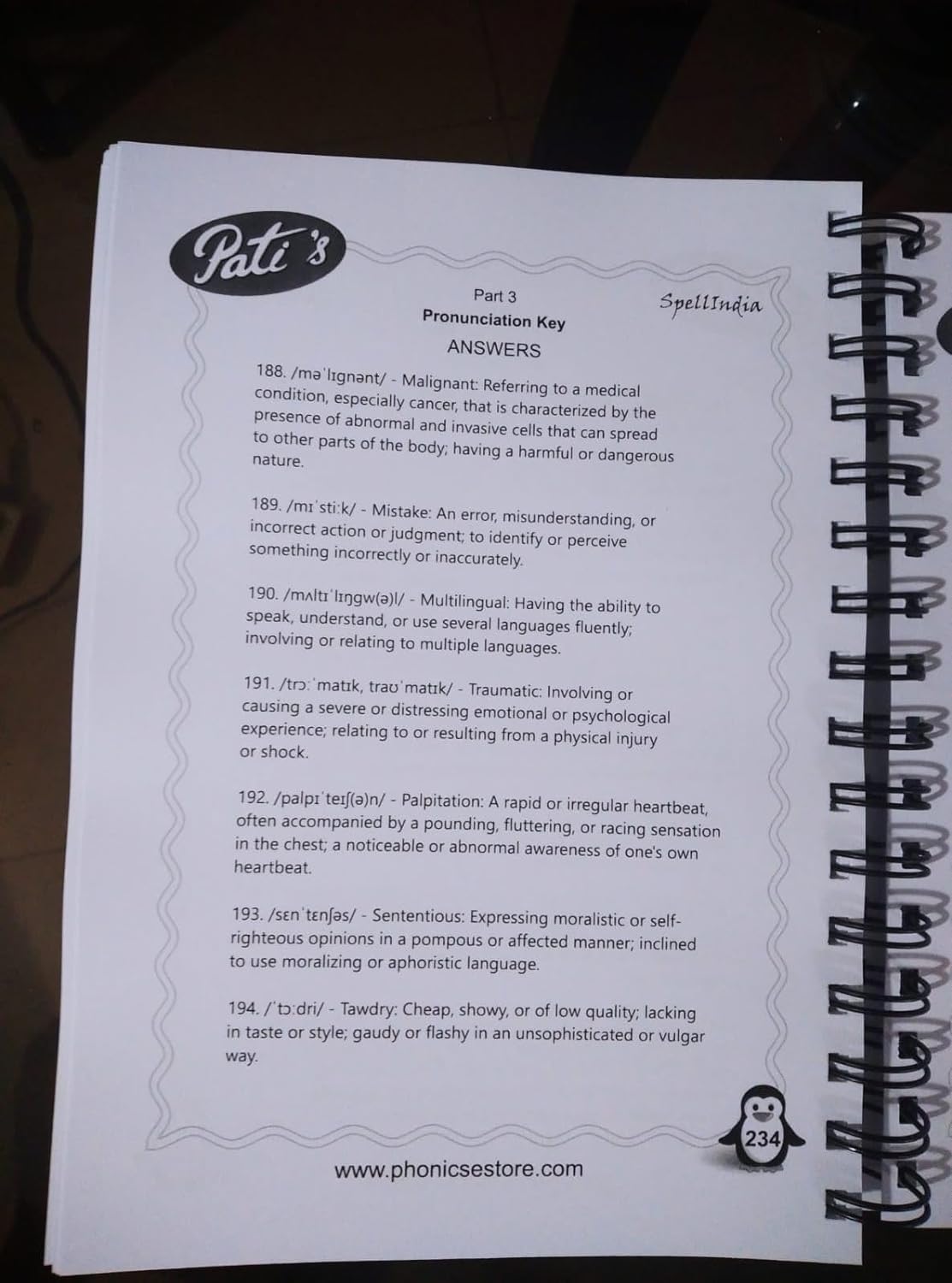 Pronunciation - Phonemic Awareness - Category 3 to 6 / Classes 3 to 8 : Book 3 Part 1- Word Scripts are provided in three sections. Separate Part 2 book is also available at amazon. Prepare for MARRS Spelling Bee championship - This book is ideal for all rounds/levels of the stated Categories Flexibound – 1 January 2018