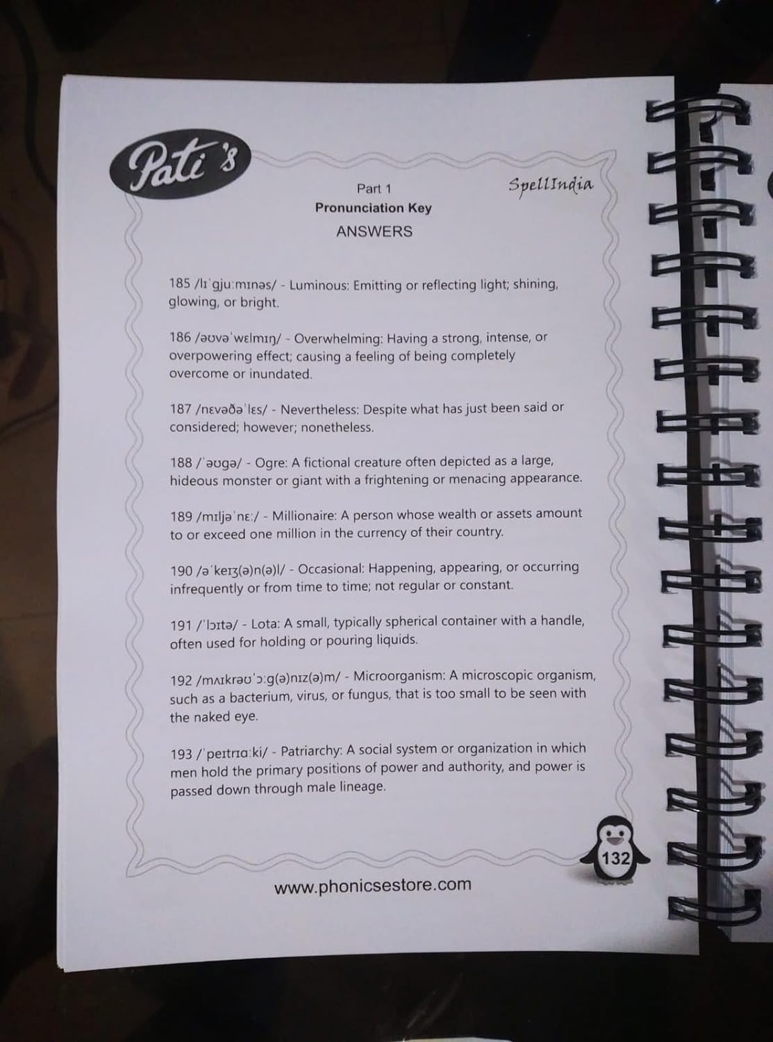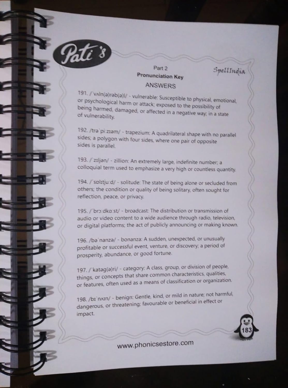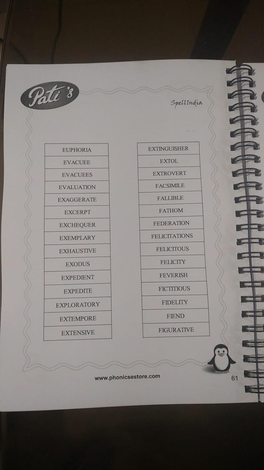 Word List Book to prepare for Sakshi India Spell Bee exam - Category 3 - Classes 5/6/7 .... from Spell India ....... has 1000+ "WORD LIST" only ..... children friendly "EASY-2-TURN" & "VERY STRONG" WIRO BINDING .......... PRICE INCLUDES shipping fee Paperback – 1 January 2017
