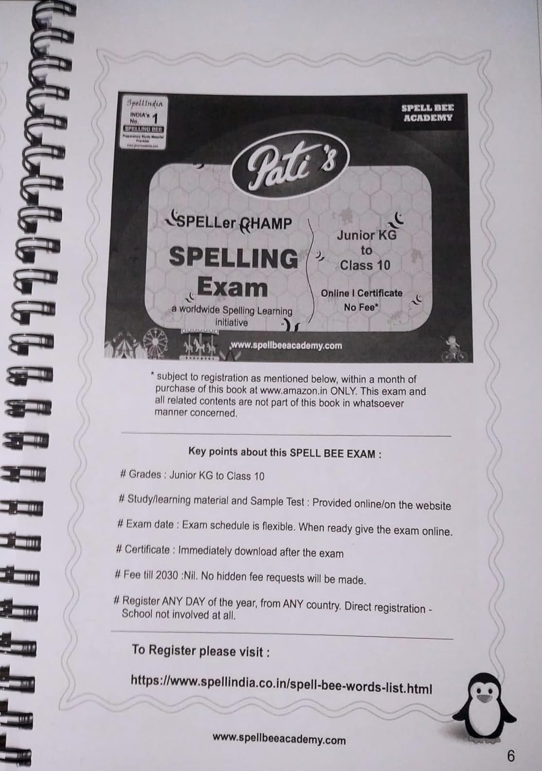 SPELLer BEE : Spelling WORD LISTS Book with 2000+ Words for CLASS 7 / 8 ... for pre purchase queries whatsapp ALL FREE Online Spell Be Certificate exam details provided in this book. No shipping fee.